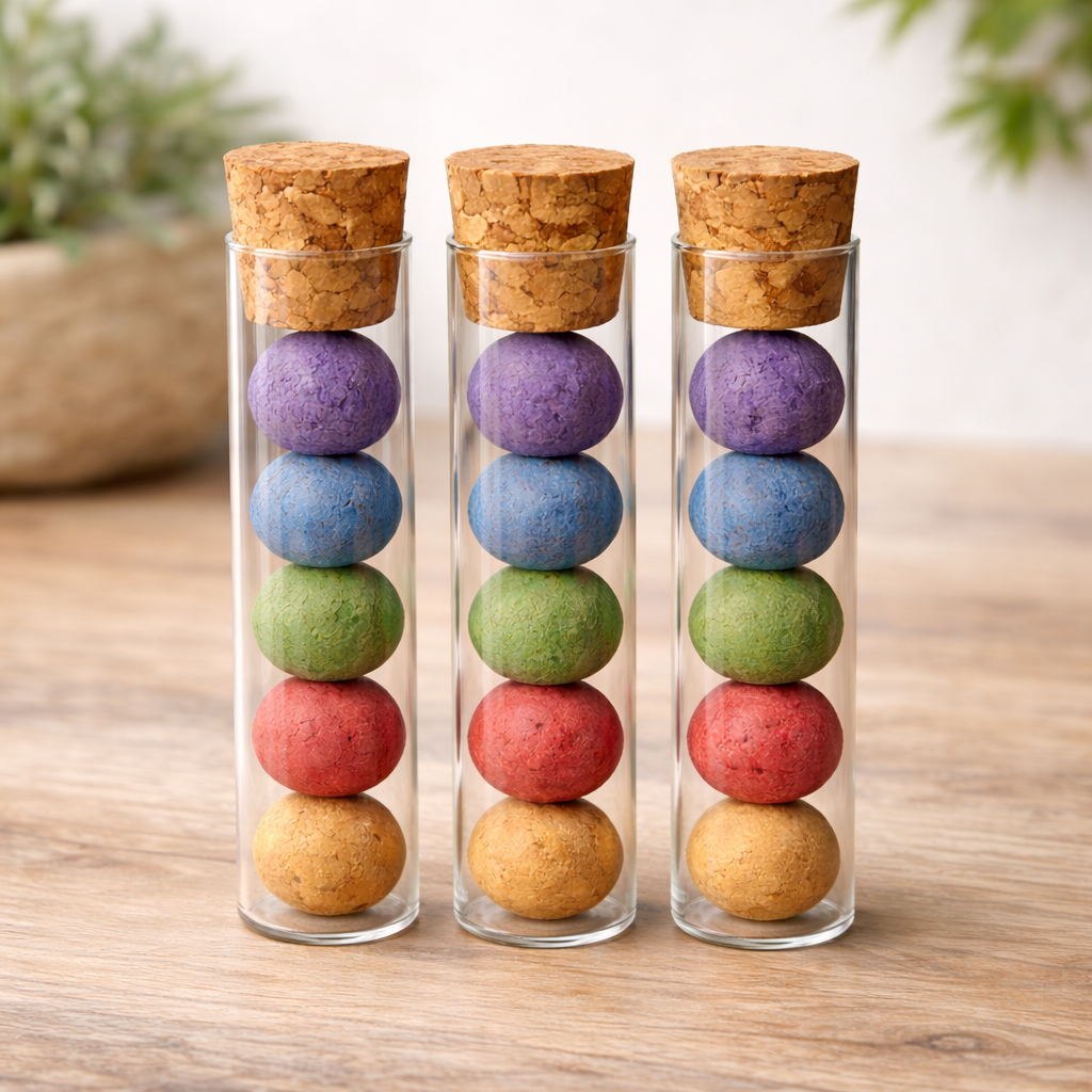Das schlichte Reagenzglas mit Naturkorken bringt die sanften, natürlichen Farben der handgefertigten Saatkugeln besonders schön zur Geltung. Jedes Röhrchen enthält 5 Blumenmurmeln (Ø ca. 1,5 cm). Jede einzelne Murmel ist ein kleines Unikat mit typischer, leicht rustikaler Oberfläche – genau das macht ihren handgemachten Charakter aus.