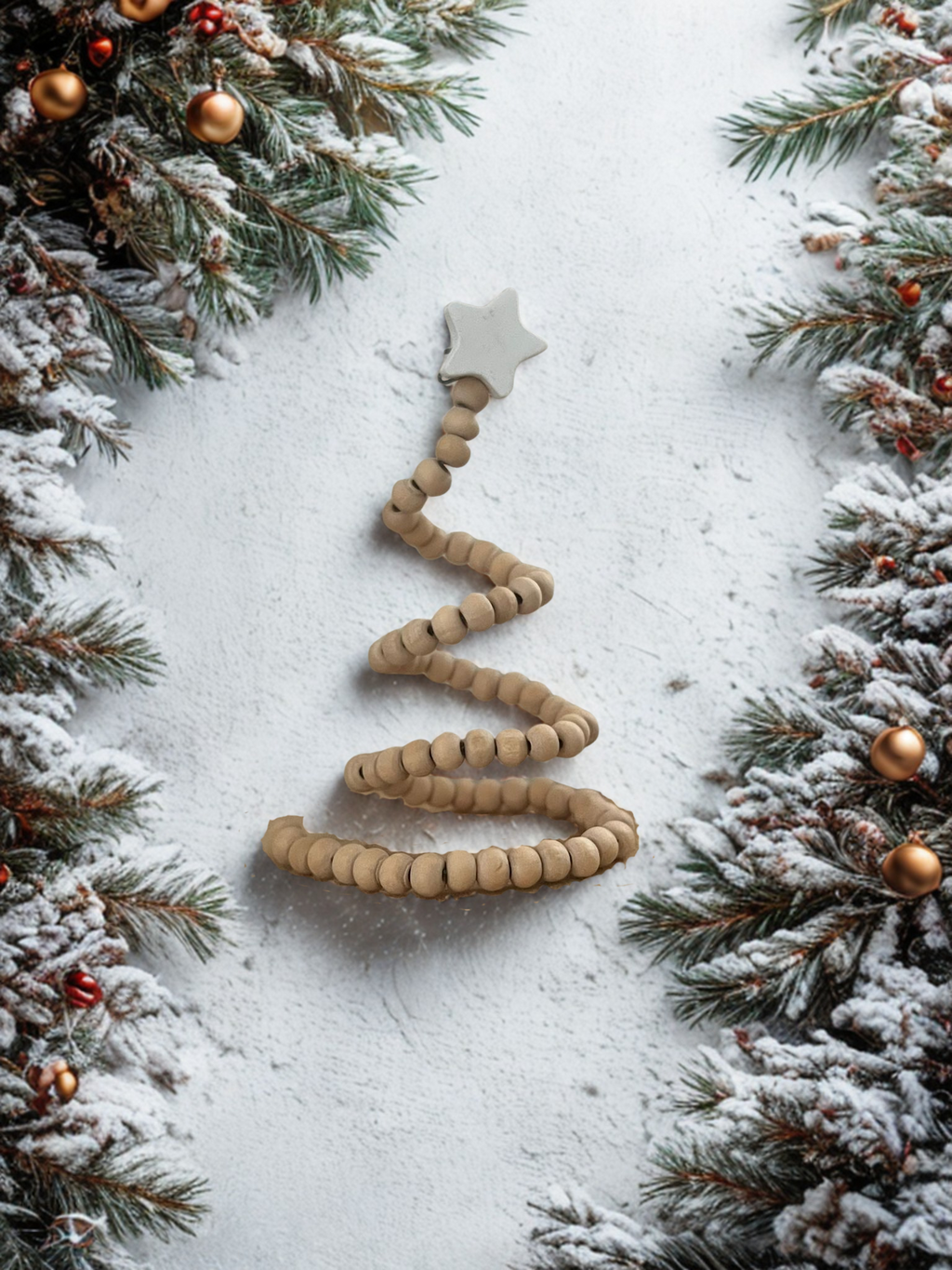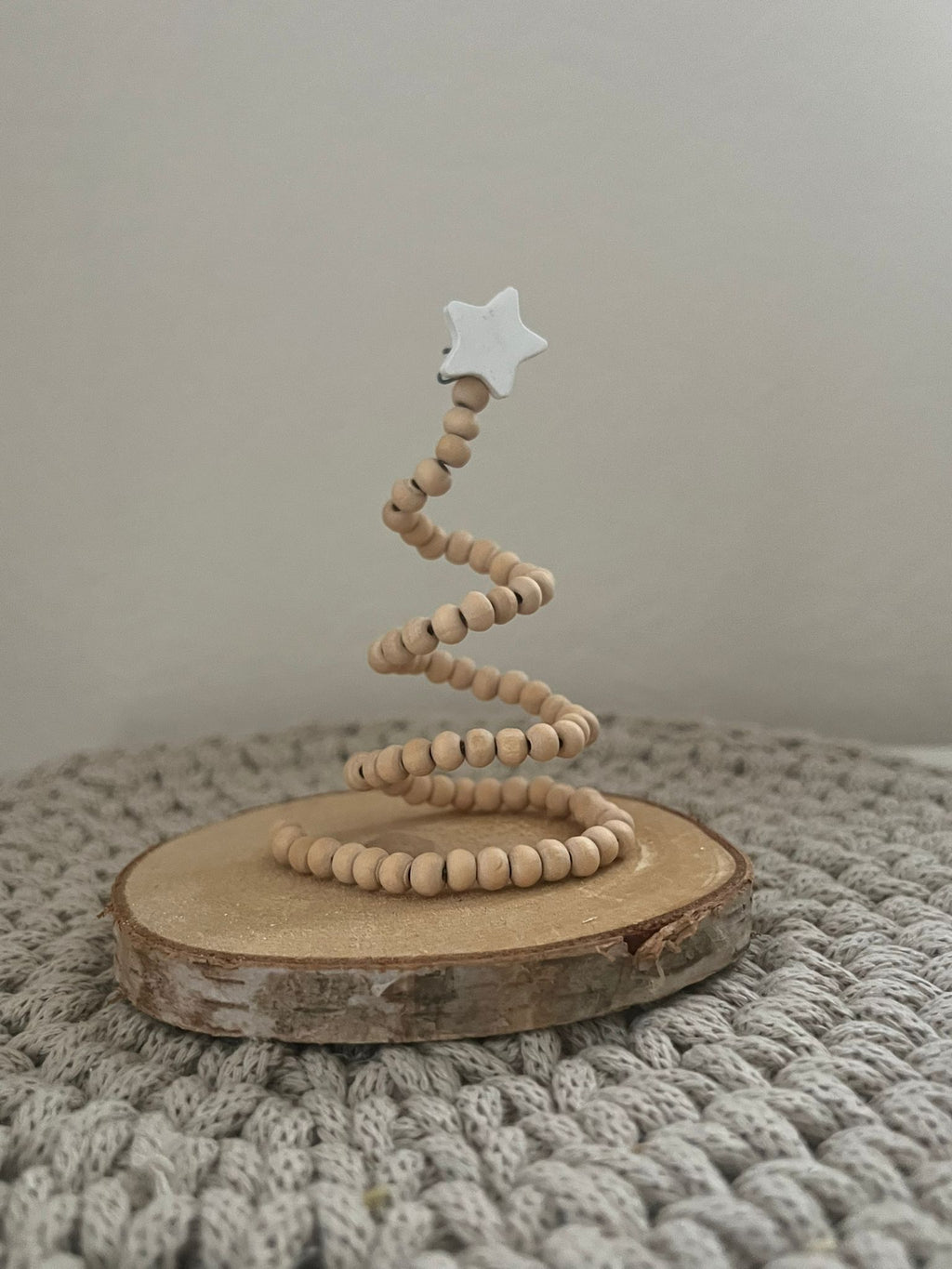 Unser charmanter Tannenbaum aus naturbelassenen Holzperlen bringt festliche Wärme in jedes Zuhause.